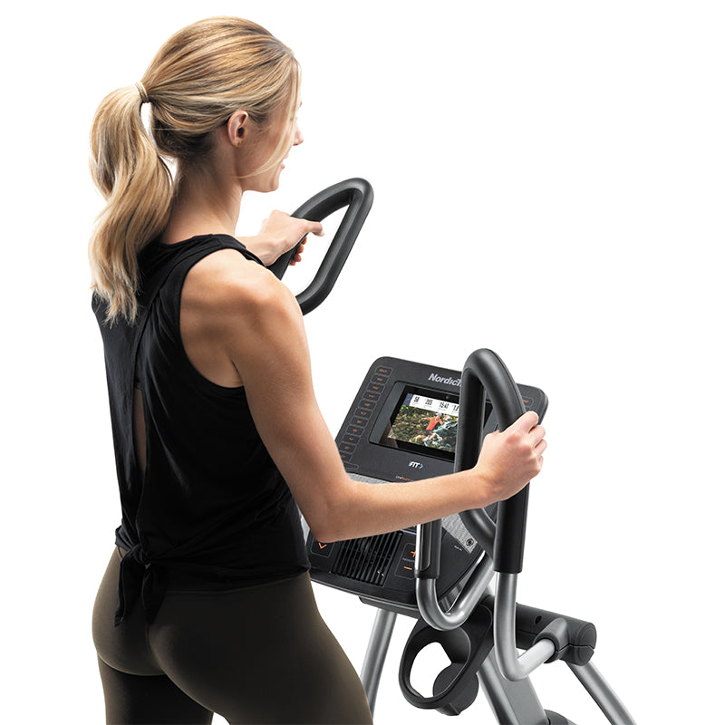 Votre coach iFIT ajuste automatiquement l'inclinaison et la résistance de votre elliptique Commercial 9.9.